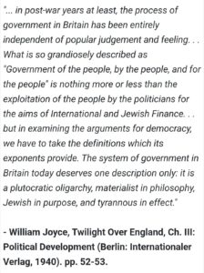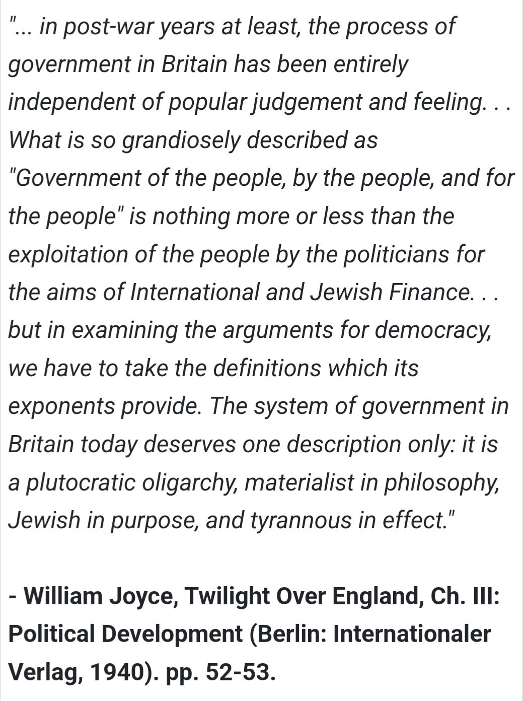 – Lt.-Colonel J. Creagh Scott, D.S.O., O.B.B., Hidden Government, Chapter IV: “Anti-Semitism and the Plan, London: Britons Publishing Society, 1954. Pg. 24. Republished 2017 as the authorised fifth edition by Candour (A.K. Chesterton Trust). Creagh Scott was a founding member of the journal Candour and of Chesterton League of Empire Loyalists.