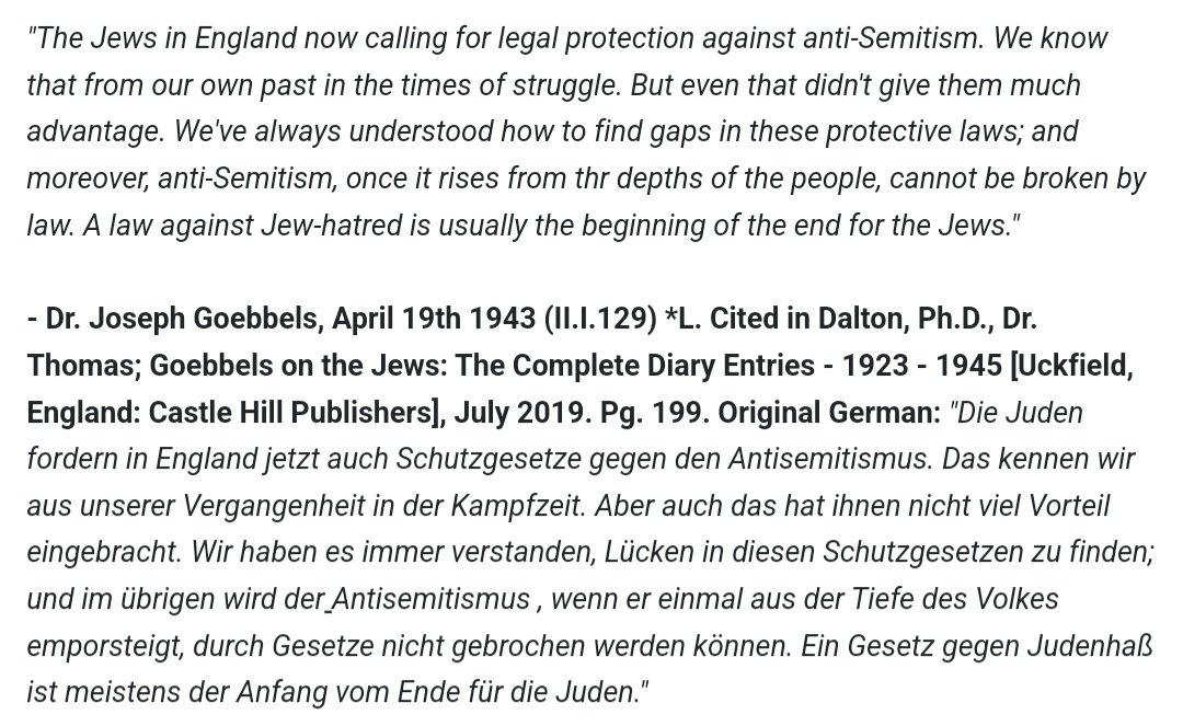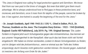 “Formerly an anti-Semite was somebody who hated Jews because they were Jews and had a Jewish soul. But nowadays an anti-Semite is somebody who is hated by Jews.”[3]