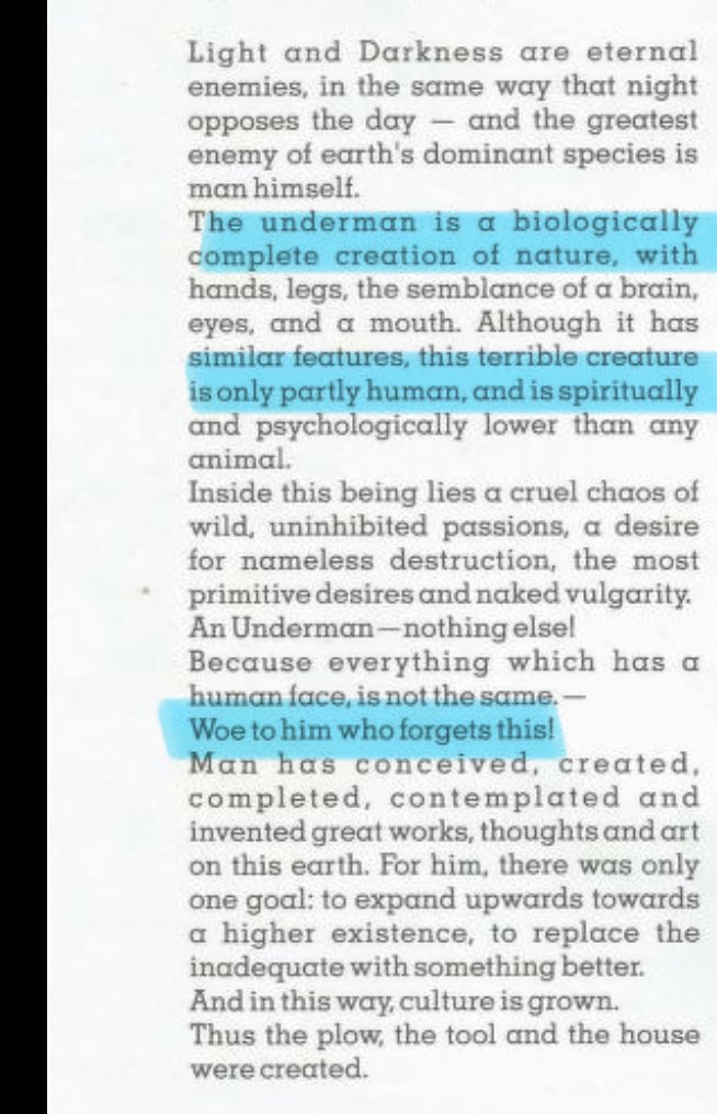 This is a short thread on a very misunderstood book called Dеr Untеrmensch. It is claimed by those who have never read it, and hope you won’t either, that this book in anti-Slavic but in reality it is not. This was published by the SS in 1942 and can be found in the library provided in the comments.